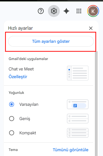 2. Sağ üstte yer alan ayarlar simgesine tıklayın ve “Tüm ayarları görüntüle” seçeneğine geçin.
